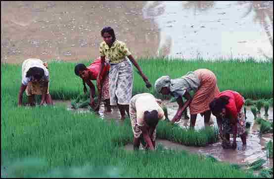 1 - Sri Lankas flagga, 2 - två barn, 3 - gatuförsäljare, 4 - risodlare